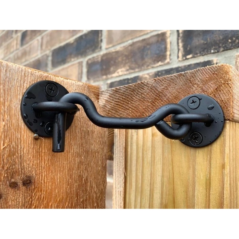 Raswik 4” Privacy Hook and Eye Gate Latch Easy Lock for Barn Door, Black
