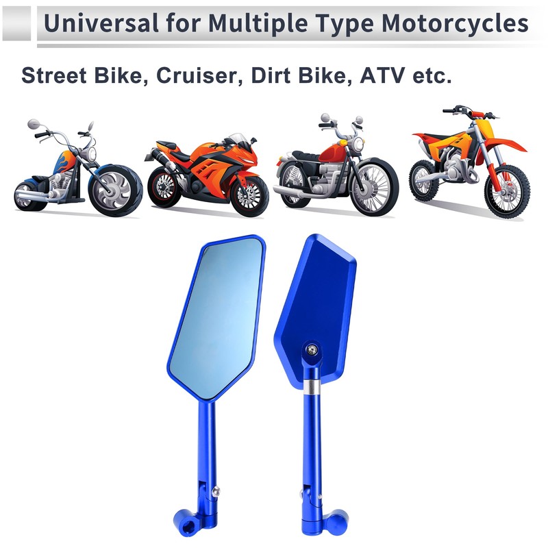 RATCHROLL 1set Universal Motorcycle Rear View Mirrors Adjustable Bar End Side Mirrors Mount M8/M10 Blue Aluminum Alloy Prismatic Shape