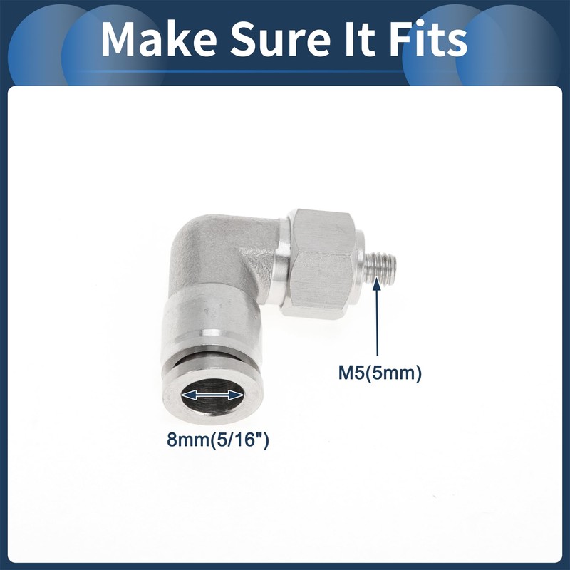 RATCHROLL Push to Connect Air Fittings 5/16" 90 Degree Air Line Quick Joint 304 Stainless Steel M5 2 Pcs Silver Tone