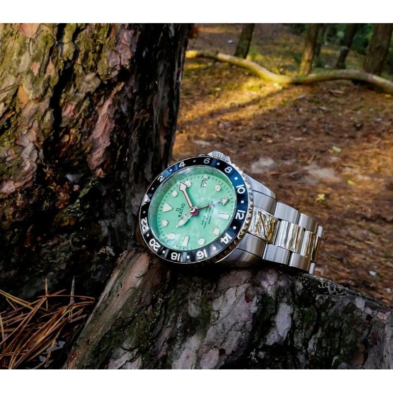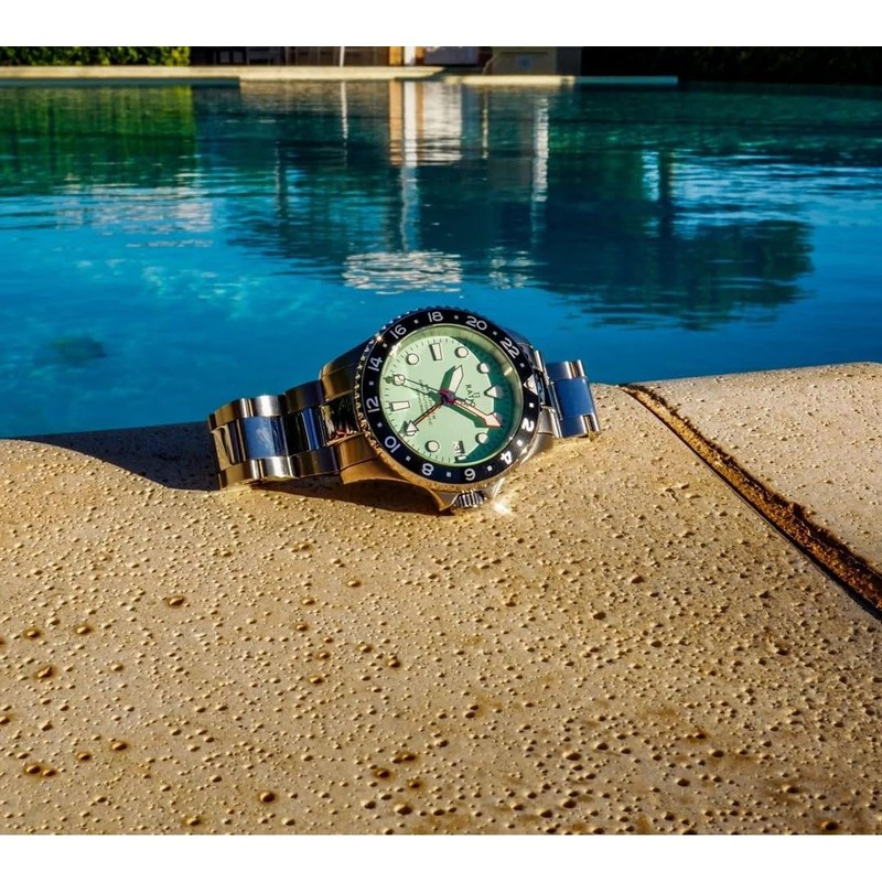 RATIO FreeDiver Dive Watch Sapphire Crystal GMT Rotating Bezel Automatic Diver Watch 200M Water Resistant Diving Watch for Men (Mint Green)