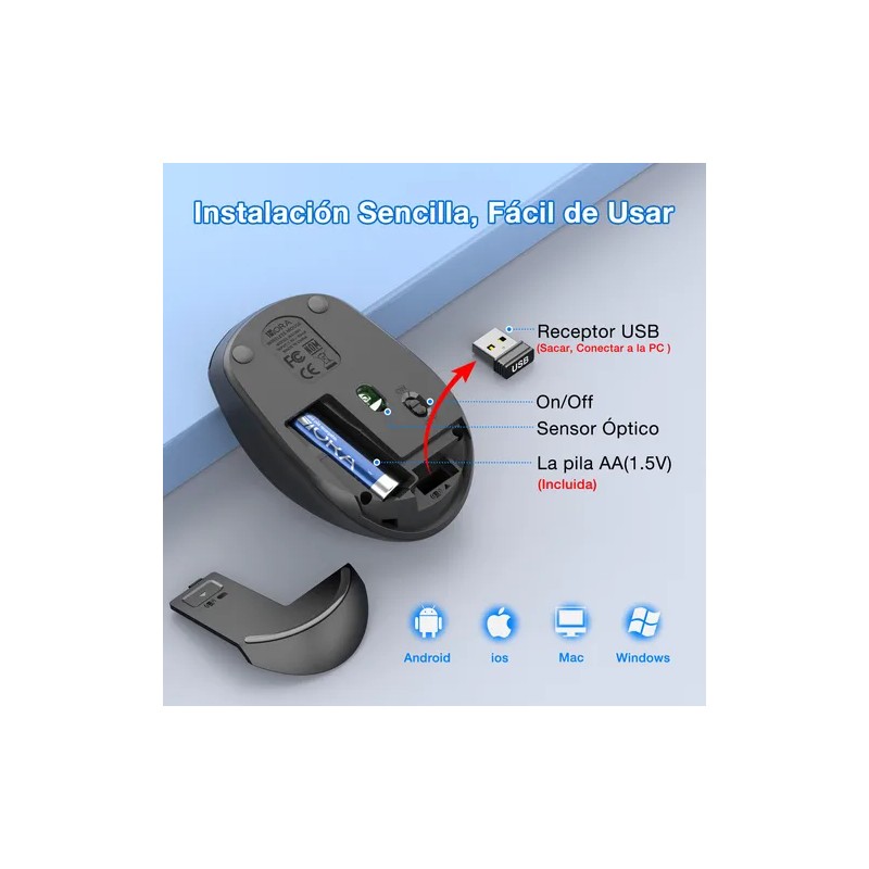5.AMPLIA COMPATIBILIDAD: Este mouse inalámbrico es fácilmente compatible con Windows 7/8.1/10/11/XP, macOS, Linux, Chrome OS, Android. para portátiles, PCs, MacBooks, Chromebooks, Tablets, Notebooks, etc.