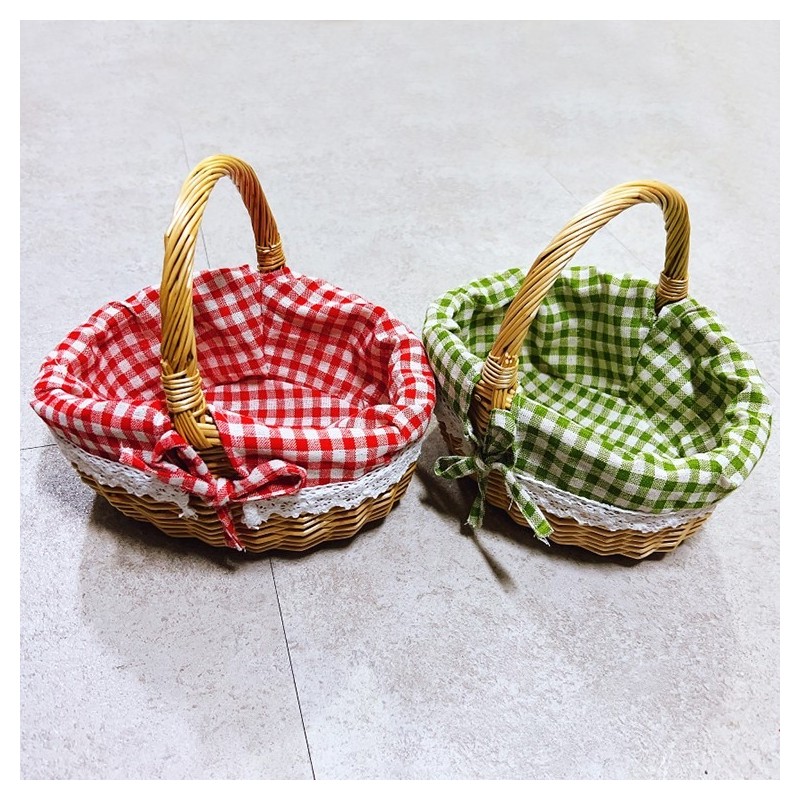 Rattan Basket School Kindergarten Interior Accessories Storage Outing green check