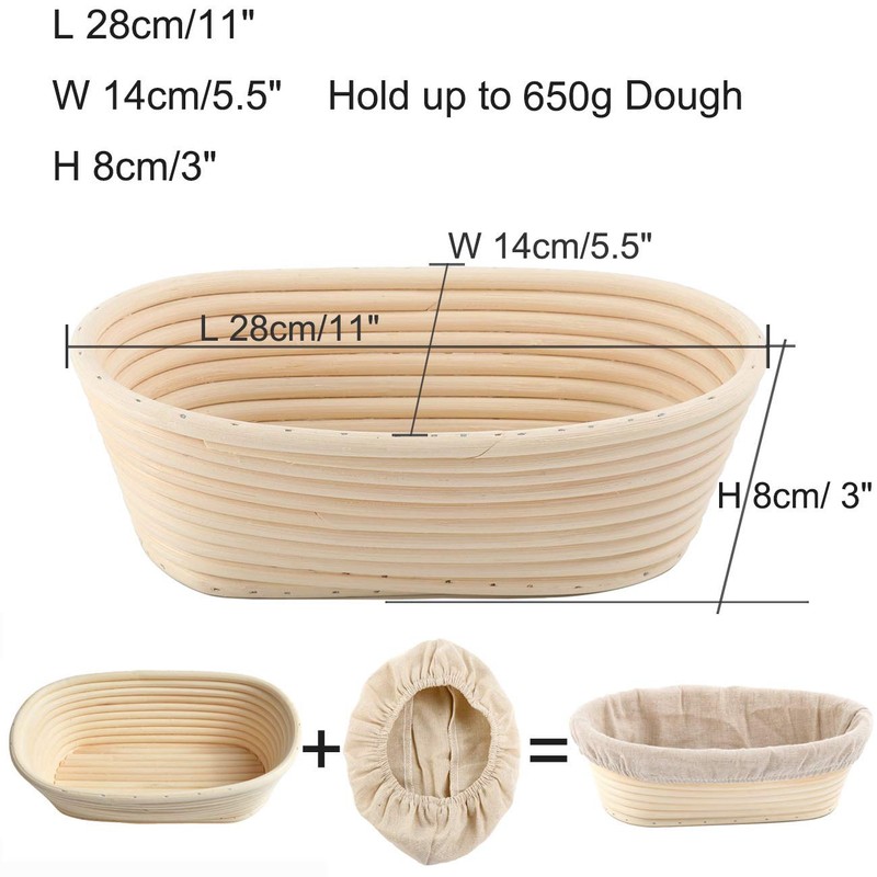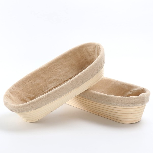 Rattan Bread Proofing Basket Sourdough Bannetons Fermentation Basket Pack 2 with Cloth Liner (11inch Oval 2 Packs)