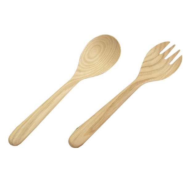Rattan Gei TOUGEI MUTE Server Spoon & Fork Set, Salad Serving Wood, Natural Wood