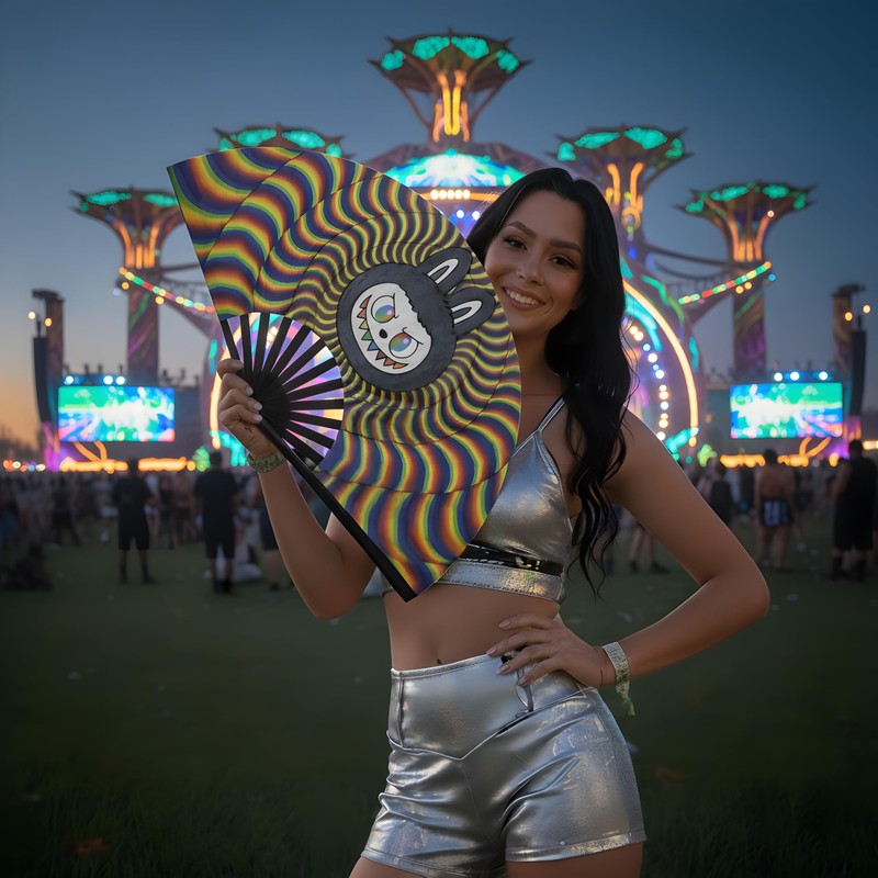 - LOUD CLACK SOUND – Flick open your fan for a thunderous snap that hypes up the crowd with every electrifying beat drop.