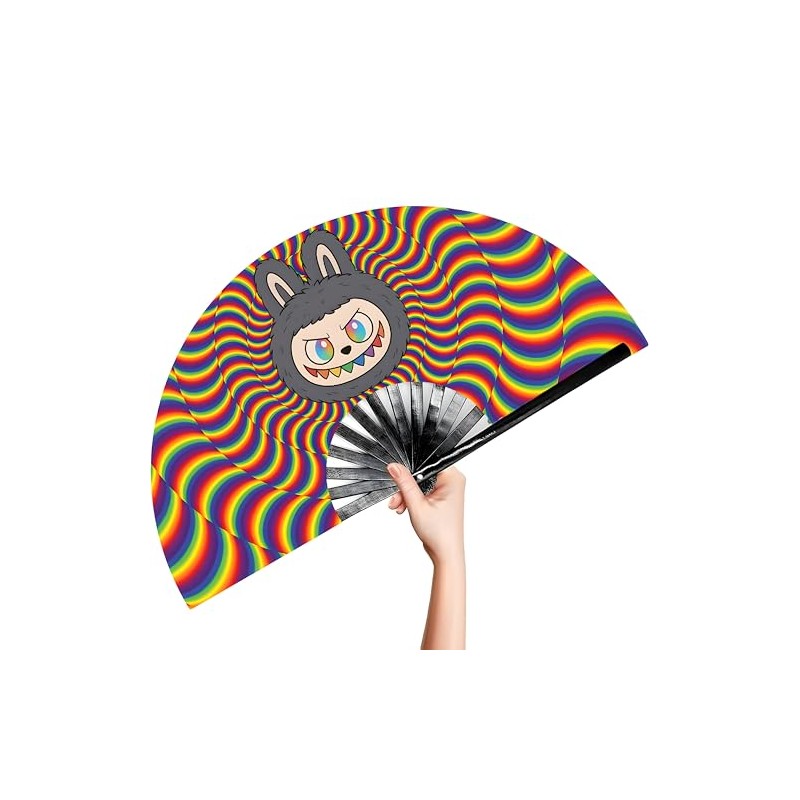 Ravedash Ugly Monster Secret Rave Fan - Large Clack Bamboo Folding Hand Fan for EDM, Music Festival, Club, Event, Party, Dance, Performance, Decoration, Gift