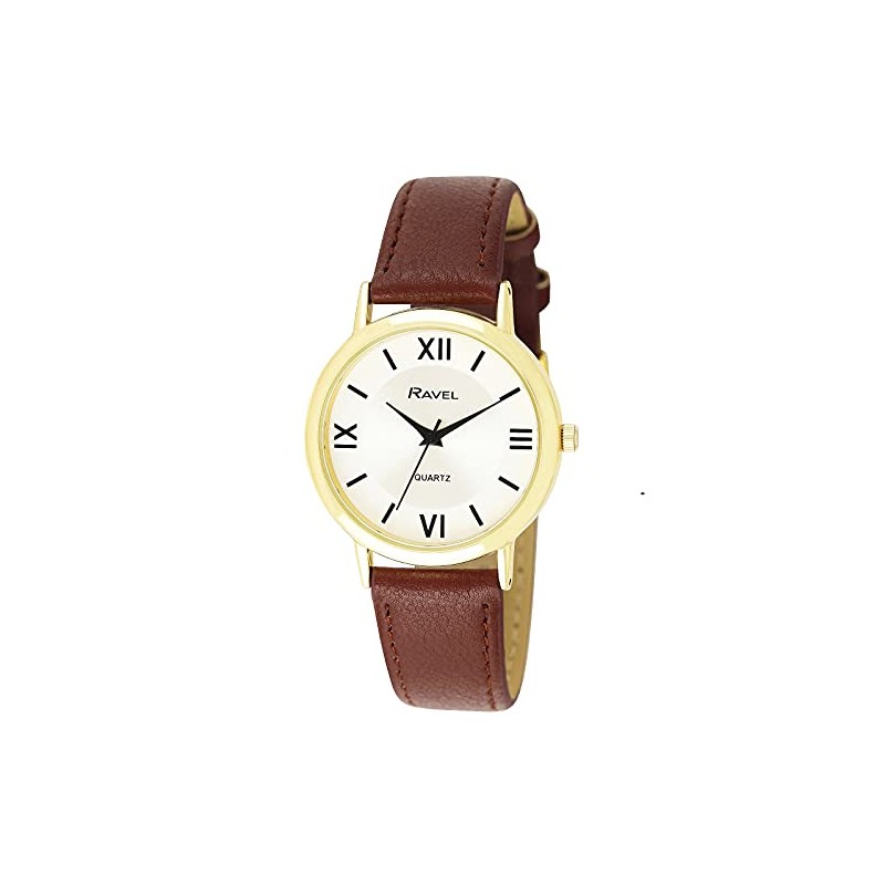 Ravel Unisex Classic Round Everyday Watch with Roman Numerals - Brown/Gold Tone