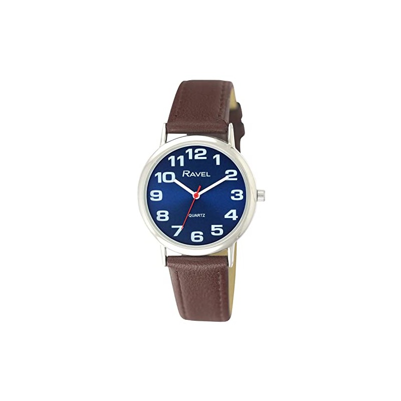 - The Ravel classic unisex watch is ideal for people with visual impairments. It has a clear blue dial with large bold white numerals and hands. The case measures 36 mm