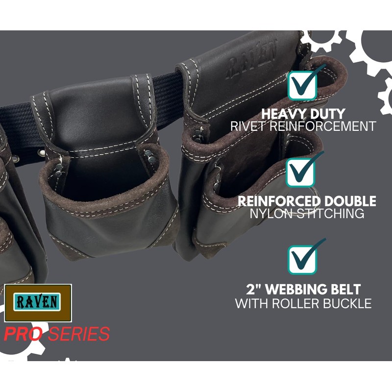 RAVEN 12 Pocket Construction Rig Oil Tanned Leather Heavy Duty Tool Pouch | Rivet Reinforced and Double Stitched