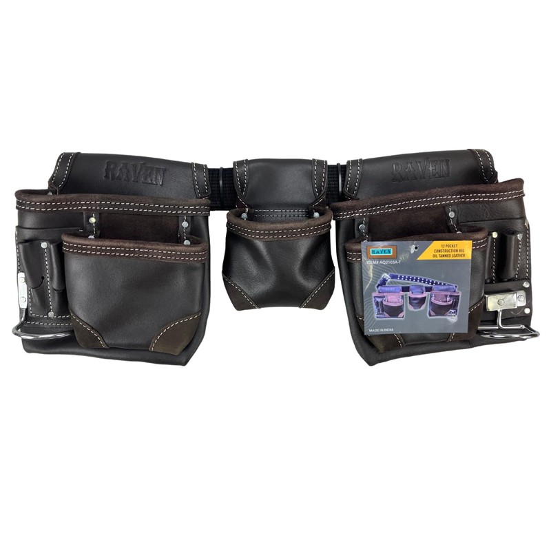 RAVEN 12 Pocket Construction Rig Oil Tanned Leather Heavy Duty Tool Pouch | Rivet Reinforced and Double Stitched