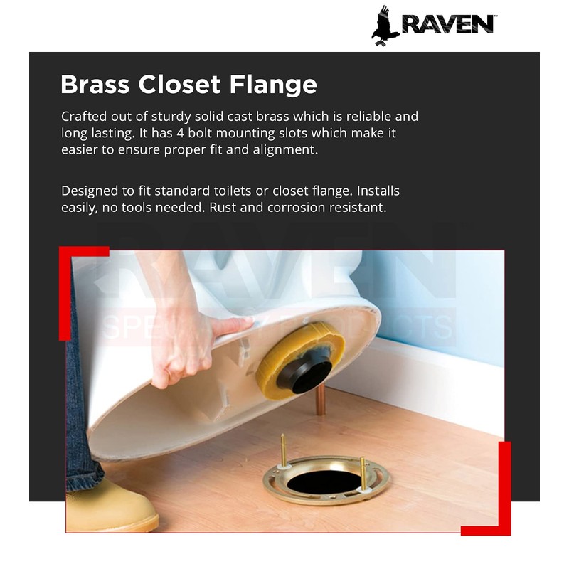 Raven CSPG6222 Closet Flange with Four Mounting Slots, 4 Inch Offset, Solid Brass, 4