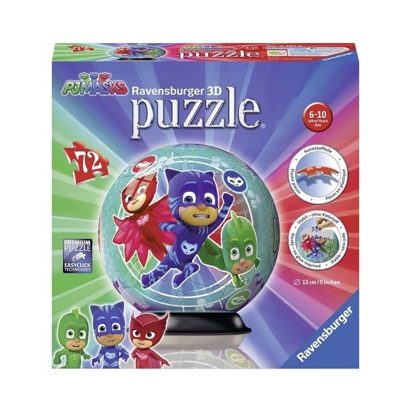 More product information: experience with this 3D puzzle ball plenty of 3D puzzle have lots of fun with the PJ masks pyjama hero. The curved plastic puzzle pieces, each piece has a sturdy ball without the use of any sticking it on. The numbered on the back enables you to Vorzusortieren and numbers to puzzle. Thanks to our easy click technology fits all parts together perfectly – for unique puzzle fun to the last part.