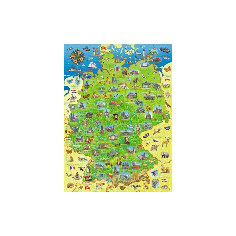 Ravensburger Children's Puzzle - Colourful Map of Germany - 200 Pieces Puzzle for Children from 8 Years [Va]