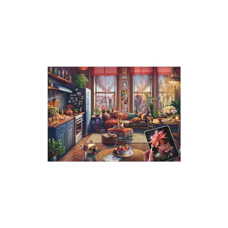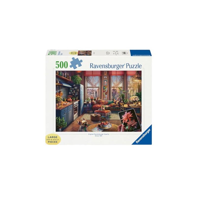 - Rompecabezas de gran formato: el acogedor rompecabezas de estudio bohemio Ravensburger consta de 500 piezas más grandes de lo estándar, por lo que es perfecto tanto para adultos como para niños para manejar y montar