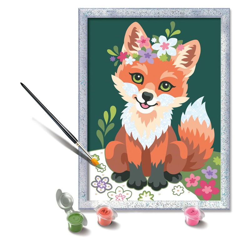 Ravensburger - CreArt D Series Classic: Fox with Flowers, Painting Set by Numbers, Includes a Pre-Printed Board, Brush, Paints and Accessories, Creative Game for Boys and Girls 9+ Years