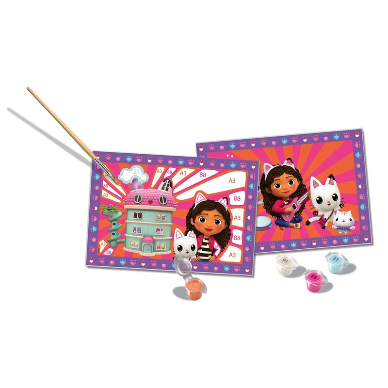 Ravensburger - CreArt Junior Series: Gabby's Dollhouse Painting Set by Numbers Includes Two Pre-Printed Tables, a Brush, Paints, Creative Game for Boys and Girls 5+ Years