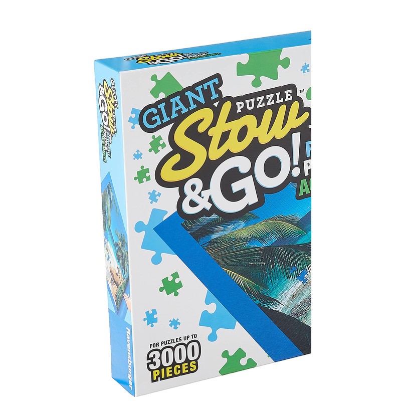 The Giant Stow & Go lets you go virtually anywhere with your favorite puzzle in tow. A felt mat for increased grip, the inflatable tube, and three rubber bands give you the flexibility to take puzzles wherever you travel. Take them on the road to grandma's house or check them on the plane so you and the kids can relax and work on a puzzle during vacation.