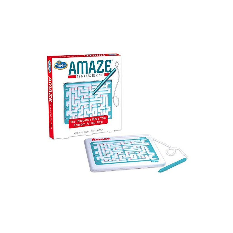 Product DescriptionA maze that changes every time you play. Players must navigate this maze game using the attached stylus, pushing open movable gateways while avoiding traps and dead ends. An innovative twist on a classic maze game, Amaze's diabolical shifting pathways change the solution path during play. With 16 unique challenges and no pieces to lose, Amaze is the ideal travel game.From the ManufacturerThis hand-held maze changes as you play it. Players set up one of 16 provided challenges and navigate their way from Start to Finish. Movable obstacles create dead-ends and endless loops.