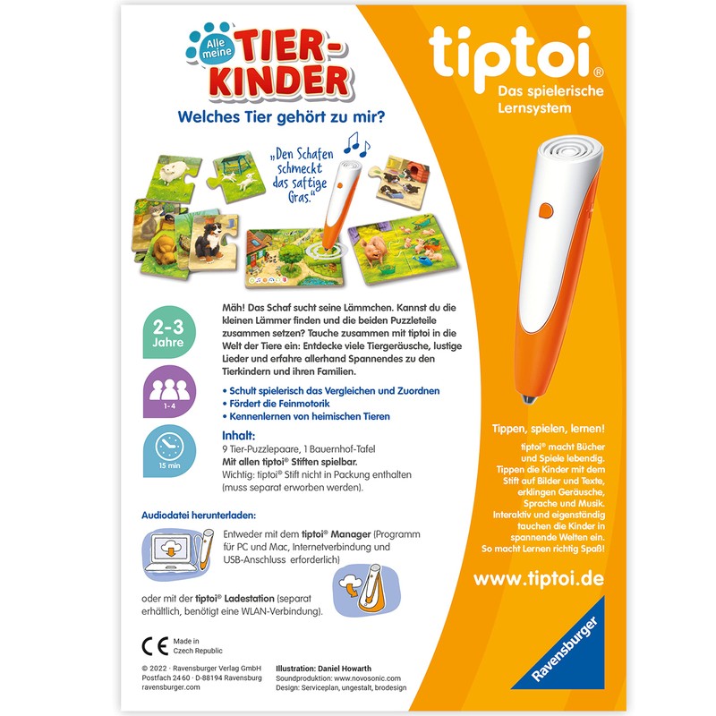 - Together with tiptoi, small animal fans from 2 years of age immerse themselves in the world of cute animal children. Loving illustrations, authentic animal sounds and fun songs make the wildlife come alive.