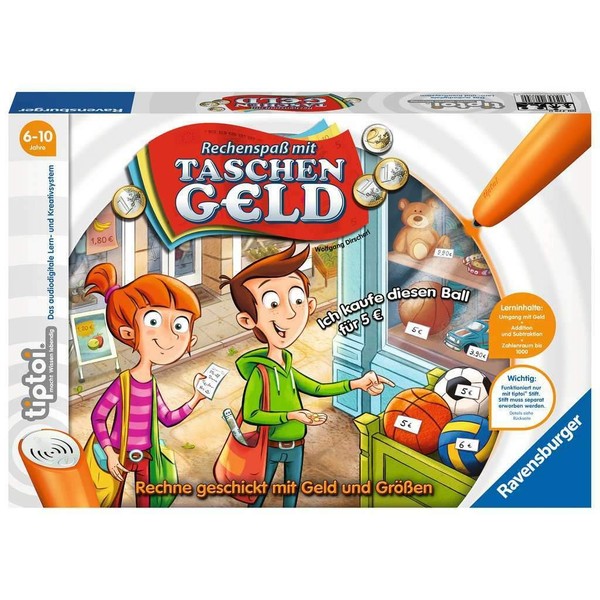 - Ideal activity: with tiptoi, children learn how to handle money. What are offers? Or should you still save? Anyone who has no euro left can earn new pocket money. Learn to add and subtract in a playful way