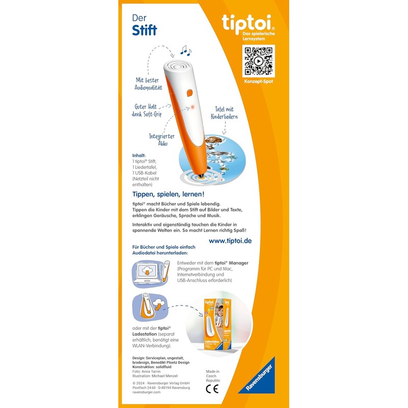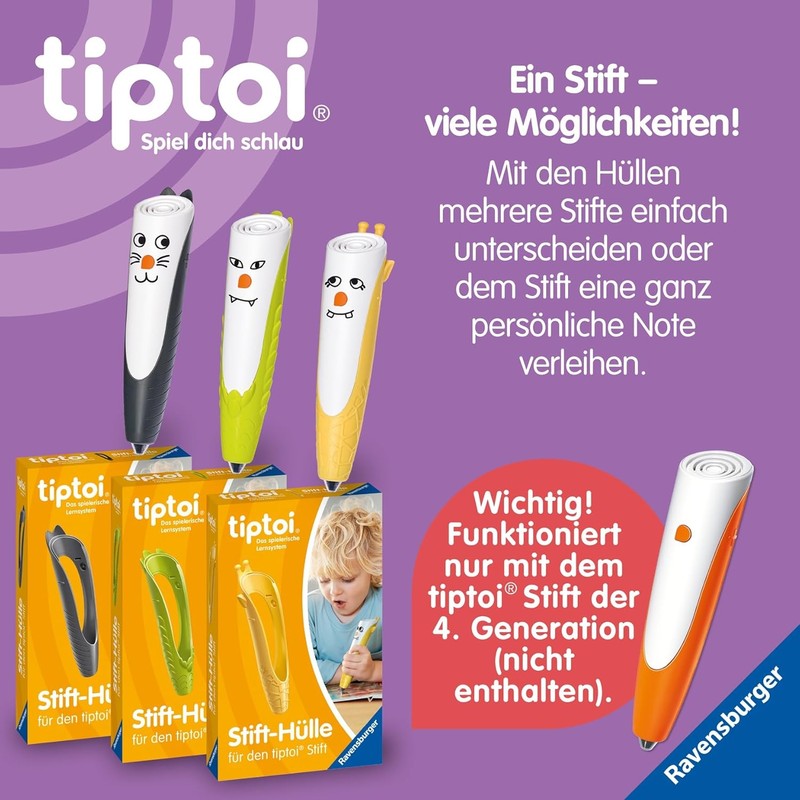 Loading audio files for your books and games is easy and secure - simply use the tiptoi Manager or the optional charging station on the pen. The pen is designed for children over 2 years old and is compatible with all tiptoi products (excluding Create products).