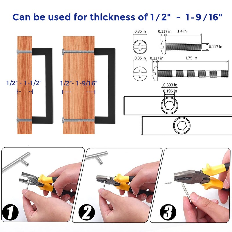 - If you're replacing your handle, measure and ensure the center to center hole spacing of the current handle is 4-1/2 inches(115mm) Installing new cabinet handles, drill two holes with center to center spacing of 4-1/2 inches(115mm)