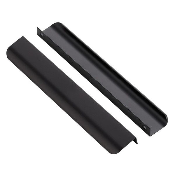 Ravinte 10 Pack Finger Pulls for Cabinets 204mm/8in Hole Center Tab Cabinet Handle Matte Black Finger Edge Pulls Concealed Handles for Kitchen Drawer Finger Hardware 254mm/10in Length