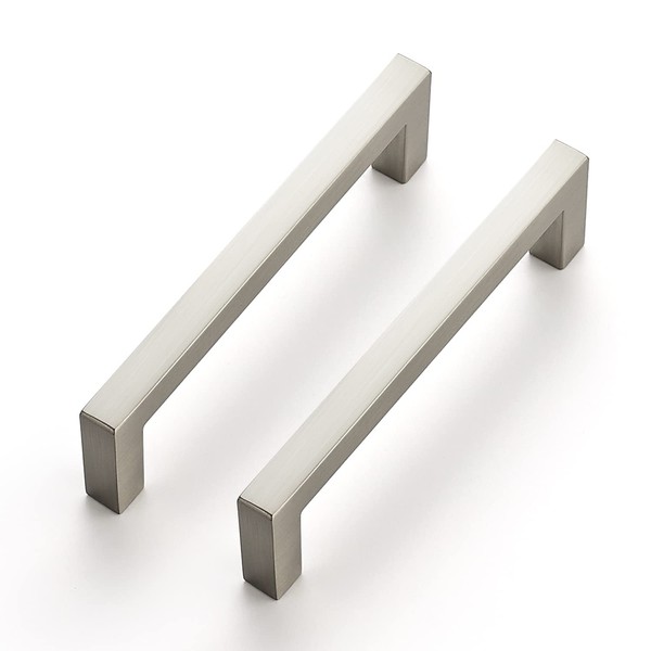 Ravinte 10 Pack Solid 3-3/4 Inch Center to Center Slim Square Bar Drawer Handles Cabinet Hardware - Brushed Nickel Kitchen Pulls