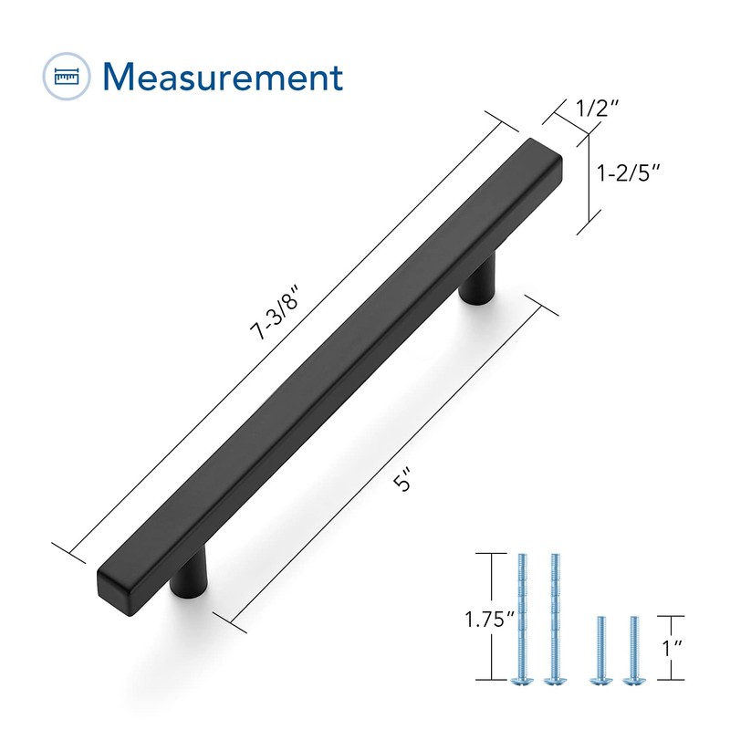4. The hole spacing of these black pulls for cabinets is 5 inches. Please make sure the hole distance before buying.