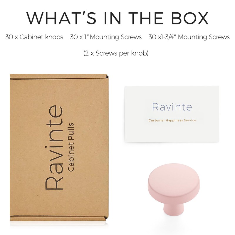 Ravinte 30 Pack Drawer Pulls 1-1/4 Inch Kitchen Cabinet Knobs Solid Round Dresser Drawer Knobs Pink Dresser Knobs Drawer Knobs Simple Cabinet Hardware for Cupboard Drawer Pulls