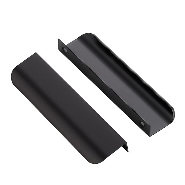 Ravinte 5 Pack Finger Pulls for Cabinets 128mm/5 Hole Center Tab Cabinet Handle Matte Black Finger Edge Pulls Concealed Handles for Kitchen Drawer Finger Cabinet Pulls 150mm/5.91" Length