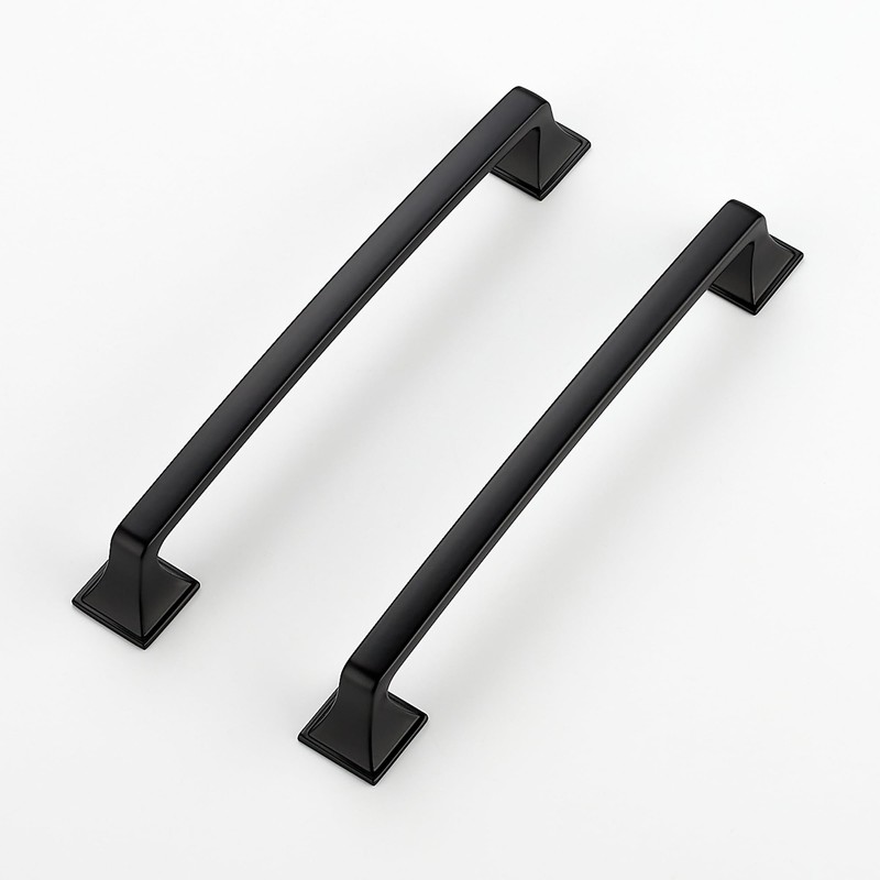 - Simple look: The matte black handles have a wide appeal across a range of kitchen cabinet doors and drawers. The black handles have a clean and timeless look that works with farmhouse, vintage, traditional and transitional styles