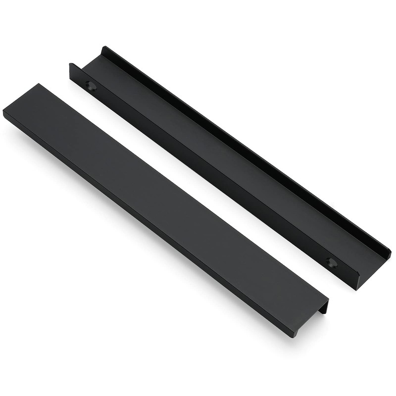 Ravinte 6 Pack Finger Pulls for Cabinets 250mm/9.84" Length Black Edge Pulls Matte Black Finger Cabinet Pulls Concealed Handles for Kitchen Drawer Finger Edge Pull Tab Handle