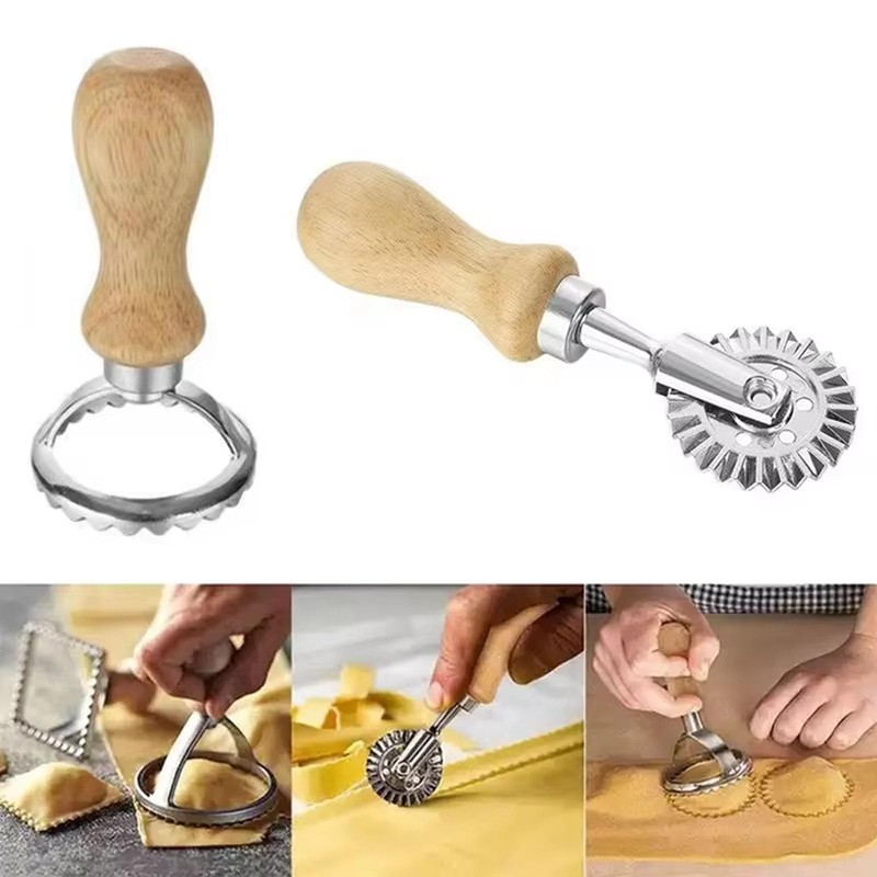 Ravioli Stamp Maker Cutter with Roller Wheel, Set of 5, Wooden Handle Ravioli Maker Cutter with Roller Wheel Pasta Press Wheel Dumpling Maker Tool