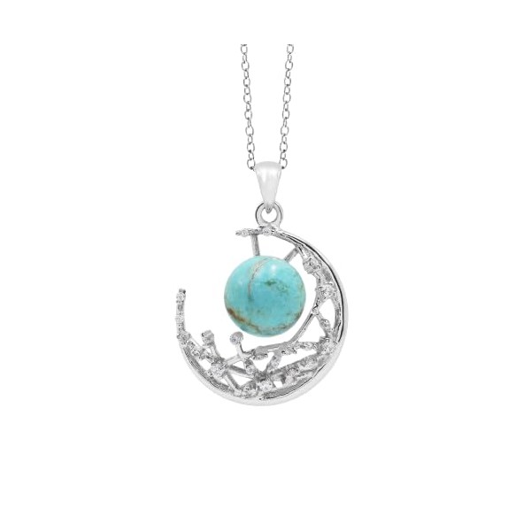 Ravishing Impressions Zarter türkisfarbener Anhänger, Halbmond-Charm, geschichteter minimalistischer Strandschmuck, Geschenk für sie, rhodiniert