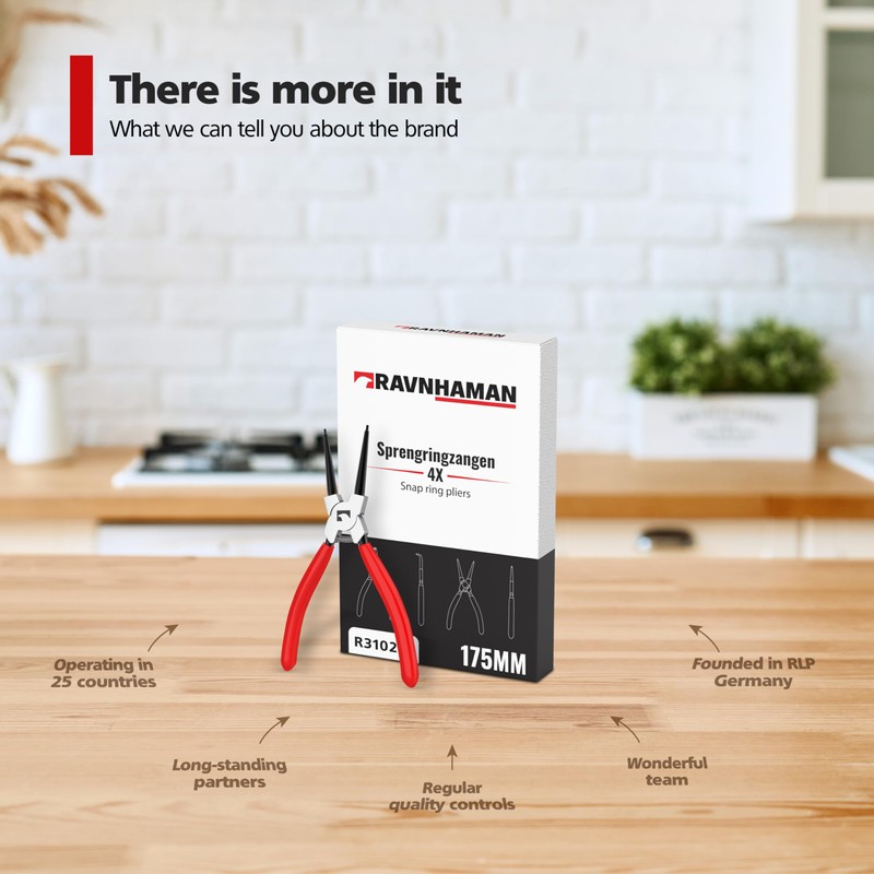 - –– STRAIGHT AND CURVED –– Thanks to the selection of 2 circlip pliers each in straight and curved versions, fitting circlips is child's play.
