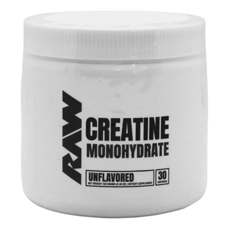 RAW NUTRITION - Polvo monohidrato de creatina sin sabor | El suplemento monohidrato de creatina micronizada ayuda a desempeñar el entrenamiento, desarrollar músculos y fuerza, creatina para hombres y mujeres, 5.29 oz (30 porciones)