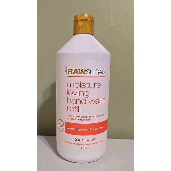 Raw Sugar 2X Raw Sugar Moisture Loving Hand Wash, Watermelon & Mint - Refill, 34 Fl Oz 1 L