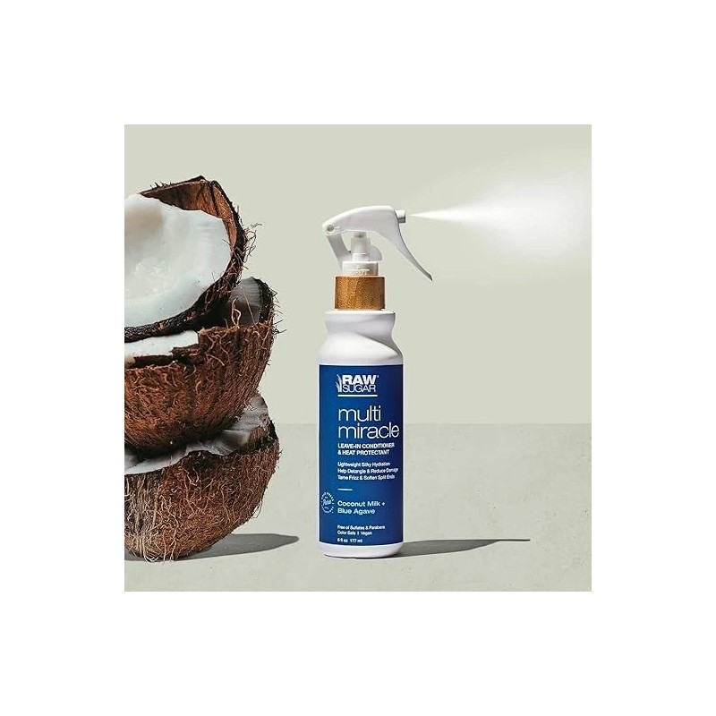 RAW SUGAR Multi-Miracle Hair Mist | Leave-In Conditioner & Heat Protectant | Coconut Milk + Blue Agave | 6 oz