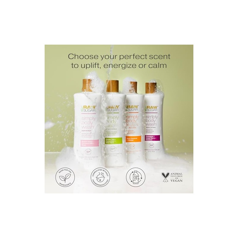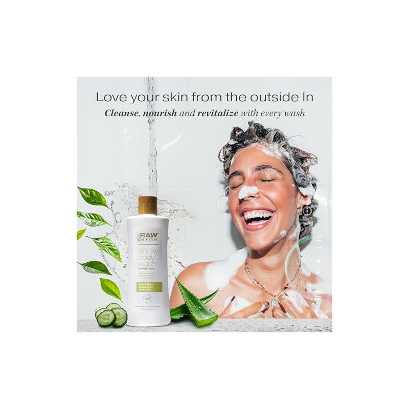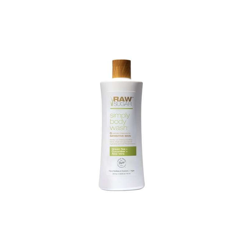 Raw Sugar Sensitive Skin Green Tea Cucumber and Aloe Vera Natural Body Wash 25oz, pack of 1 - Producto Original de Alta Calidad, Entrega Rápida y Segu