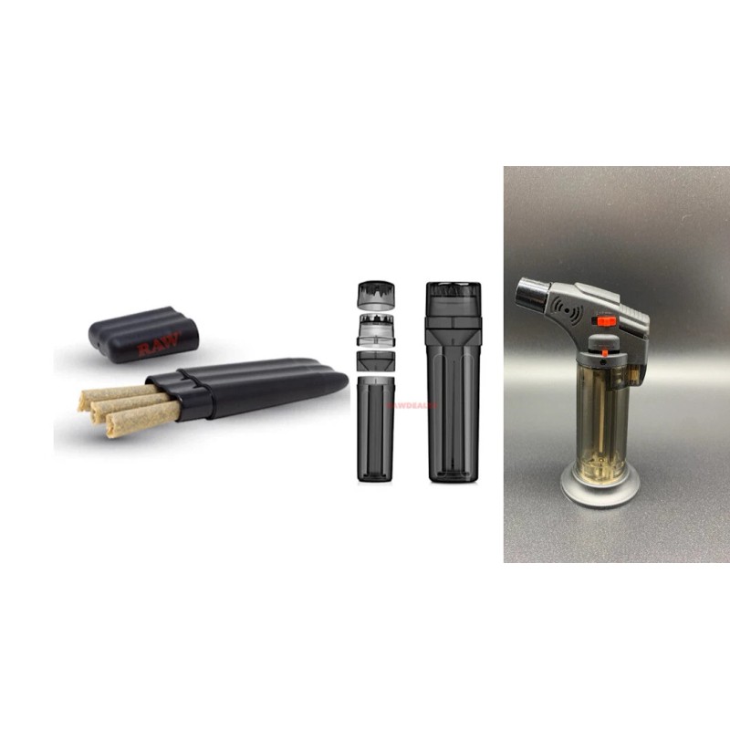 raw three tree cone case holder+cone grinder filler+jet torch lighter