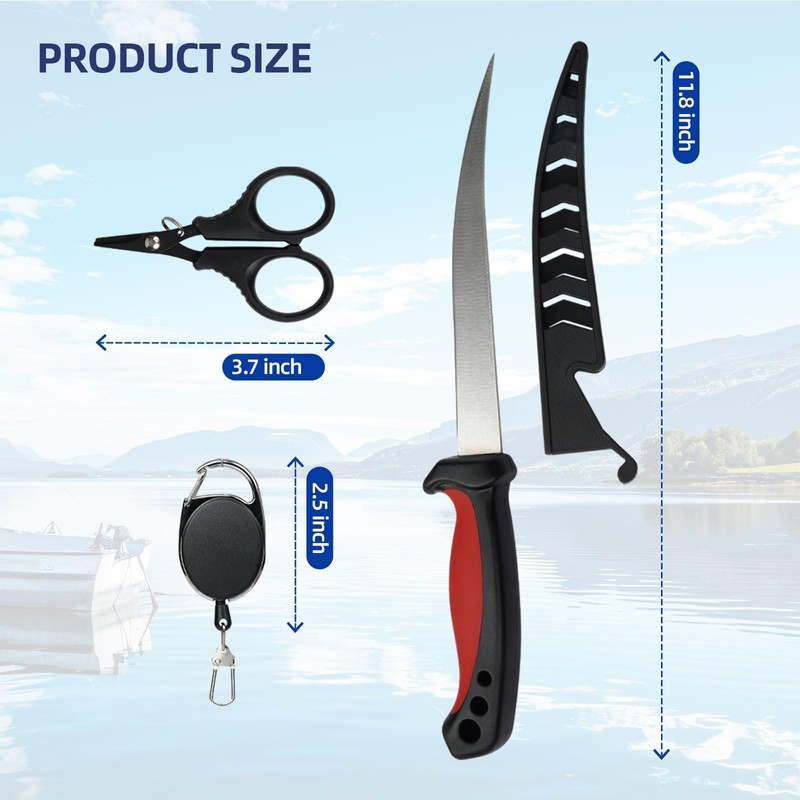 RAWILL Fishing Kit,Filleting Knife, Hook Remover, Fish Grip, Line Cutter,Fishing Scale, Pliers with Lanyards,Not Include Batteries.As A Gift for Anglers