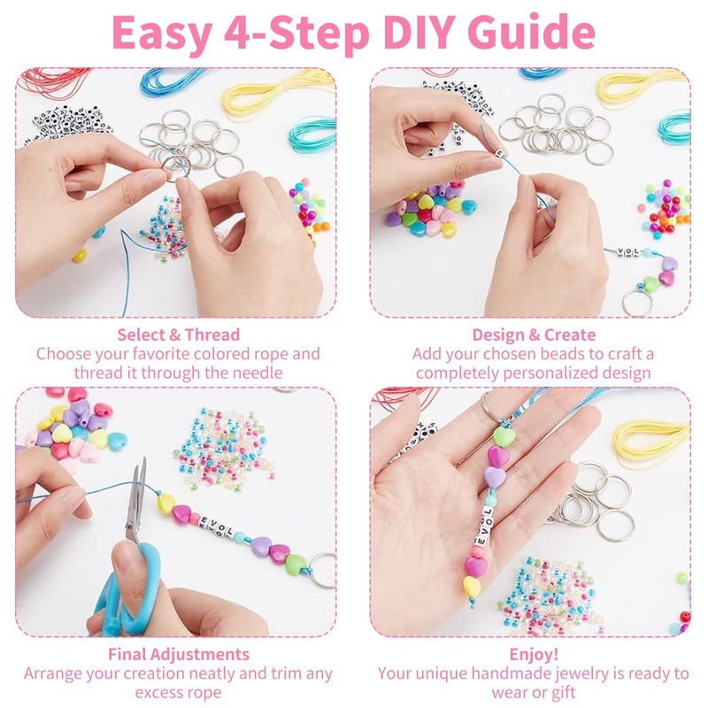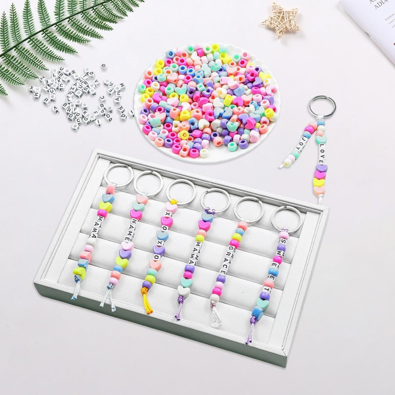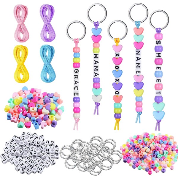 - Complete DIY Keyring Set: This key ring making kits include 500+ premium components - durable acrylic letter beads, heart charms, seed beads, sturdy iron key rings, and waxed cords. Perfect for creating DIY keyrings, backpack charms, and personalized gifts. Everything needed for endless crafting possibilities in one convenient kit.