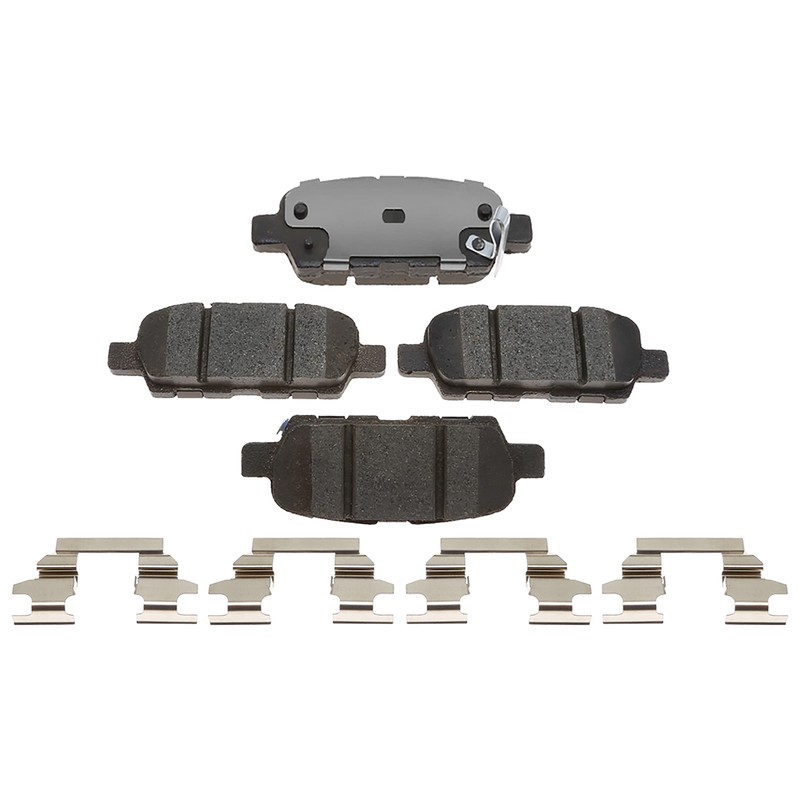 Raybestos Element3 Replacement Front & Rear Disc Brake Pads Set with Hardware features Enhanced Hybrid Technology formulations that combines the best attributes of both ceramic and semi-metallic all in one brake pad. Key features of this top-of-the-line braking technology includes 20 to 25% stopping power during aggressive braking and 35% improved pad wear and durability. Additionally, five layered shims with electronic wear sensors promote quiet stopping in a wide variety of temperature ranges. For easy installation, abutment clips, piston clips, spreader springs and anti-rattle clips are included. With more than one million miles of on-road testing conducted across domestic, import, light truck and fleet vehicles, drivers looking for unprecedented braking control and stopping power should look no further than Enhanced Hybrid Technology brake pads.