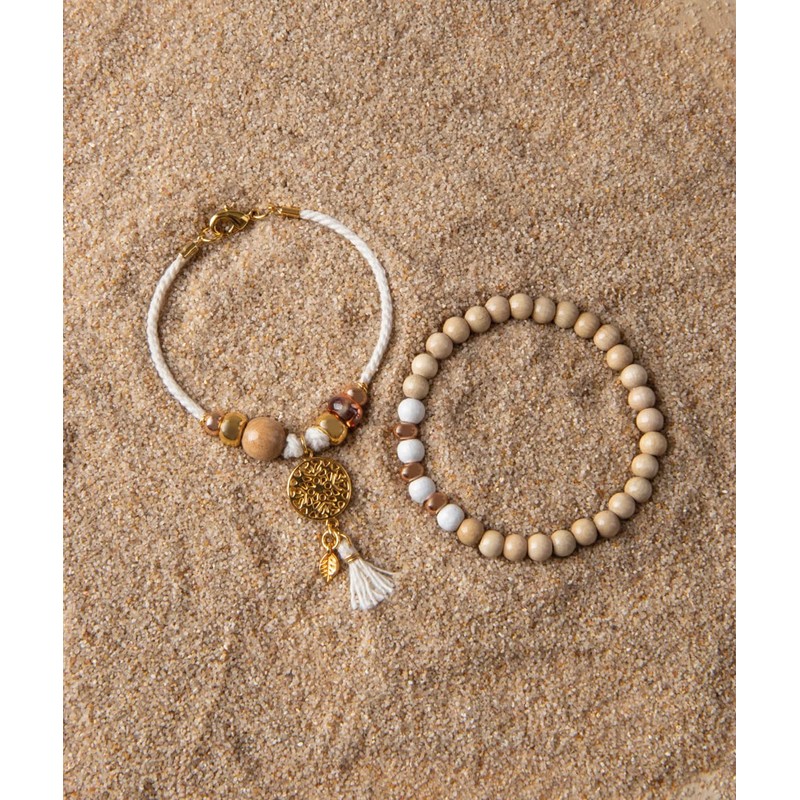 Rayher Craft Kit "Summer Dream", approx. 18 cm, Set of 2, DIY Bracelets, Bracelets for Crafts, Wooden Beads FSC Certified, 15400000