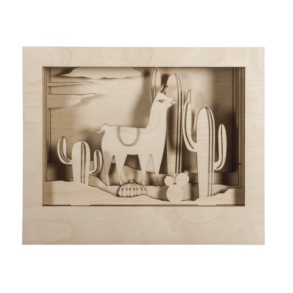 • Your story in a box - desert mood with great cacti and cute llama. Wooden kit 10 pieces: 6 panels with frame and motif elements, 4 wooden strips, instructions (English language not guaranteed)