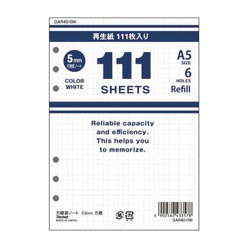 Raymay Fujii DAR4010W Personal Organizer Refill, Value Notebook, Grid Ruled, A5