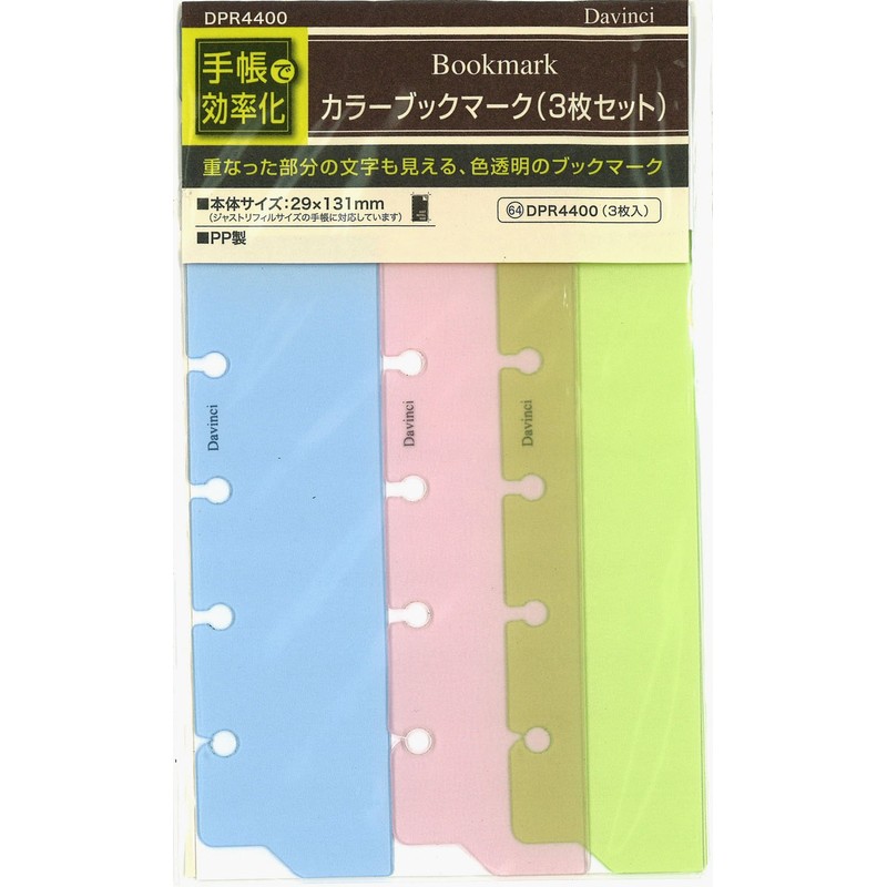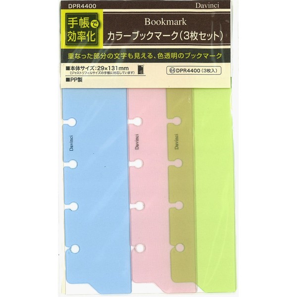 Raymay Fujii DPR4400 Da Vinci Notebook Refill Color Bookmark, 3 Pieces, Pockets