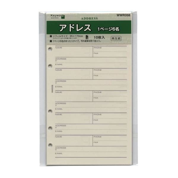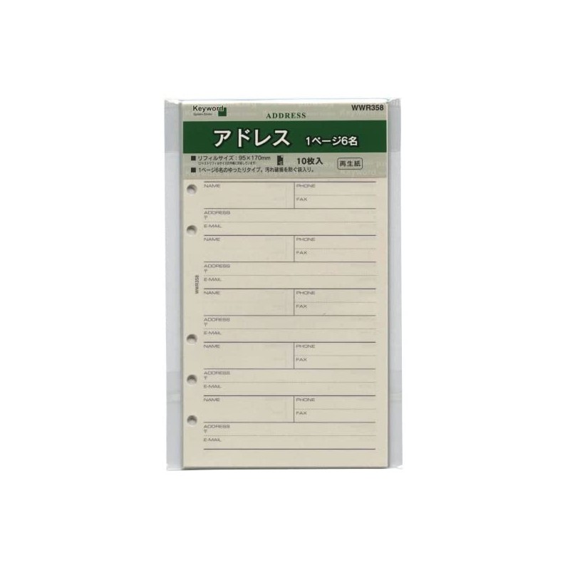 Raymei Fujii WWR358 Keyword Personal Organizer Refill Address (6 People) Bible Size