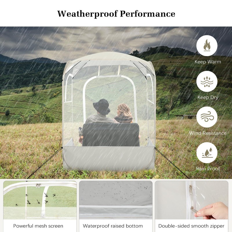 - 360° Panoramic Clear View: Our sports tent has 4 transparent sides for unobstructed 360° views. Crystal-clear sides ensure you have an excellent viewing experience without missing any details. The clear sports tent is perfect for cheering on athletes on the lawn, enjoying beautiful outdoor scenery, or having pleasant family chat time in the backyard.
